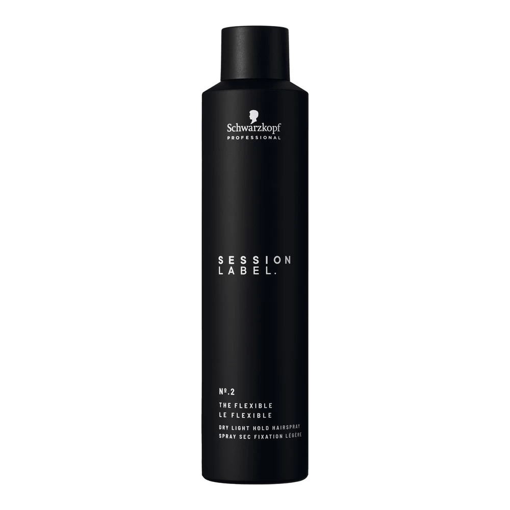 Le Flexible Session Label Schwarzkopf : spray sec fixation légère pour une fixation naturelle, un effet sec et un résultat léger.