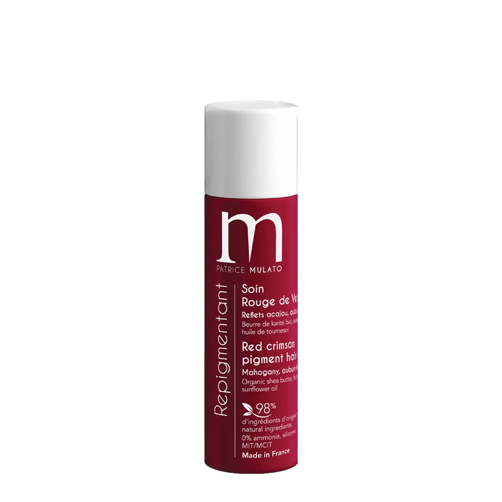 Soin Repigmentant Rouge De Venise Patrice Mulato : soin crème rouge de venise, reflets acajou auburn pour cheveux naturels ou colorés. Composé de beurre de Karité bio, aux extraits de fruit et huile de tournesol. 98% d’ingrédients d’origine naturelle, 0% d’ammoniaque, eau oxygénée, solicone et paraben. Fabriqué en France.