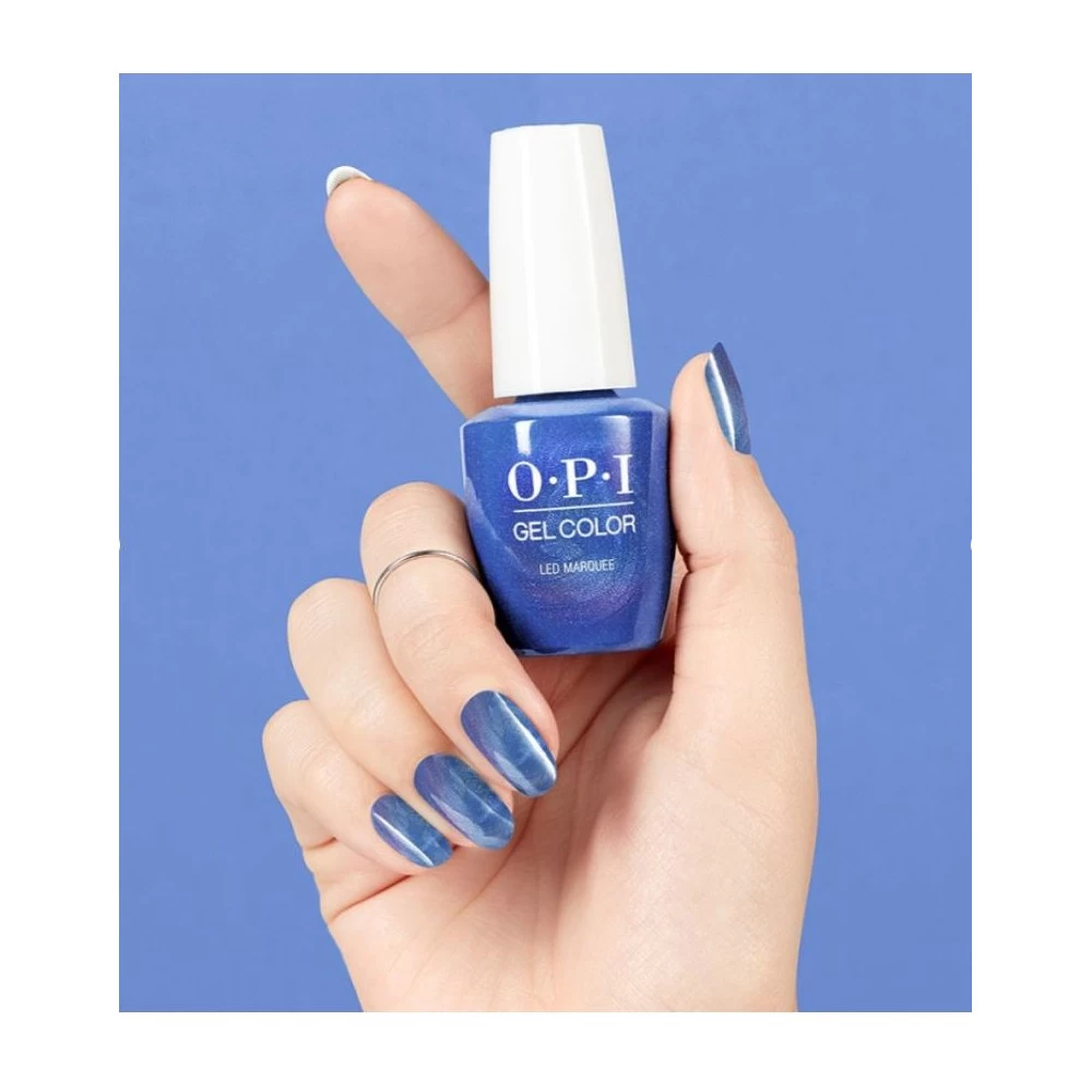 Vernis Semi-permanent GelColor Led Marquee, un bleu vibrant et holographique de la collection des fêtes Celebration by OPI.